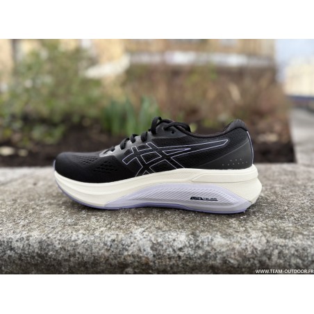 Amorti : La semelle intermédiaire est composée d'une mousse qui offre un rebond réactif tout en absorbant au mieux les chocs à l'impact. Le gel au niveau du talon, emblématique de la marque, associe douceur et légèreté au fil des kilomètres. Présent sur la zone latérale au milieu et à l'arrière du pied, le procédé intégré gage de soutien promet une excellente stabilité à chaque foulée.