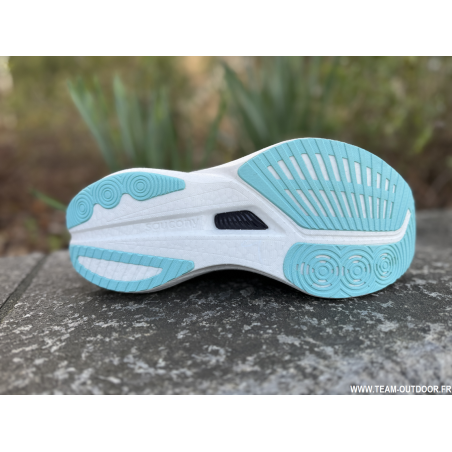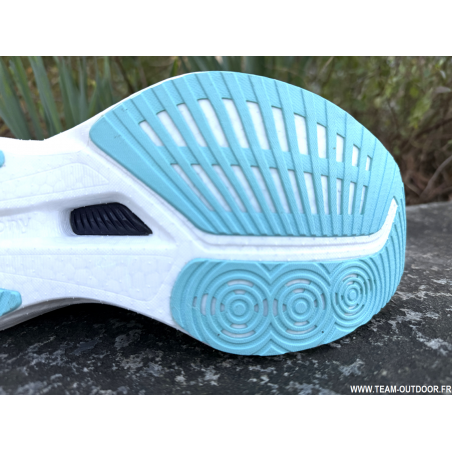 Une géométrie de semelle extérieure repensée avec une rainure sur toute la longueur pour des transitions plus fluides.