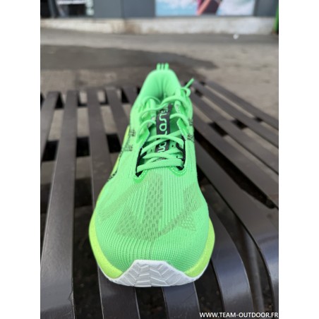 Chaussure de trail équipée d'une plaque carbone qui permet d'obtenir une stabilité sans faille ainsi qu'une énergie décuplée...