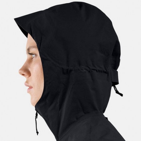 Cette veste imperméable est conçue avec une matière 2,5 couches en fibres partiellement recyclées présente une superbe finition mate. Dotée de coutures intégralement étanchées et d’un ratio imperméabilité/respirabilité de 20K/20K, elle évacue efficacement la transpiration tout en te maintenant vraiment au sec malgré l’averse. Cette veste est dotée de deux poches pour les mains accessibles même avec un sac à dos. Elle s’ajuste à la taille et présente une visière fixe pour la pluie sur la capuche.